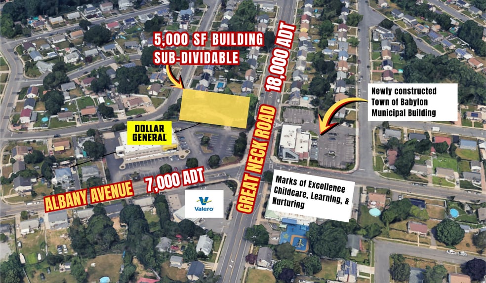 - Situated at the signalized intersection of Great Neck Road and Albany Ave