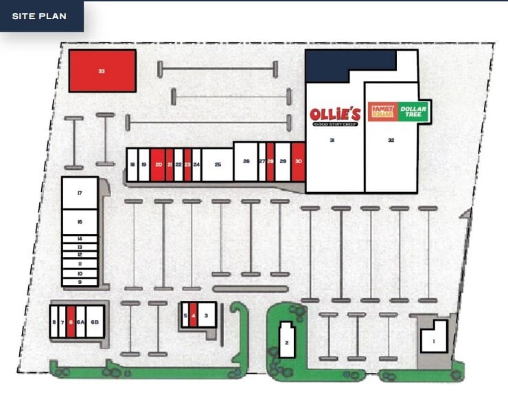 - Home to a strong mix of local and national tenants, including Dollar Tree, Family Dollar, Ollie's Bargain Outlet, Hibbett Sports, and Applebee's.