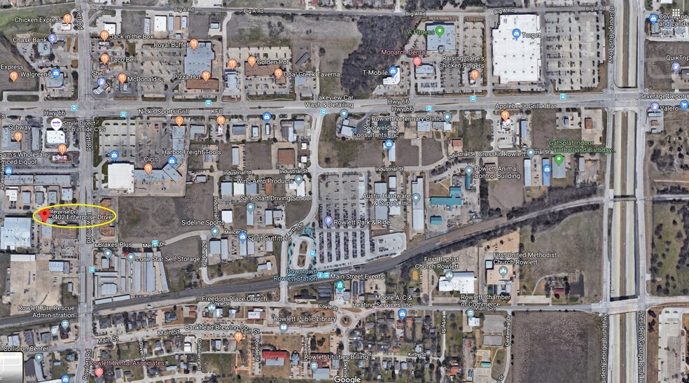 FURNISHED INTERIOR - This is a very nicely remodeled property that is centrally located in the City of Rowlett with DART light rail, RT 66, and George Bush I-90 all nearby. Telecom is via fiber optic cable with multiple fibers available; building is also wired for ethernet. There are very large windows in the front and a large lobby. Excellent heating and air-conditioning. The US Post Office is next door and many restaurants and stores are within walking distance.