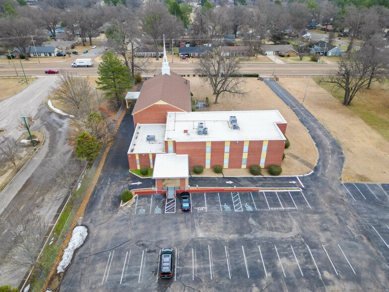 Well-maintained church campus on 14± acres in a high-traffic location offering strong visibility and flexibility for congregations, schools, or redevelopment. This building Features a 200+ seat sanctuary, fellowship hall, kitchen, nursery/daycare, 10+ classrooms, numerous offices, 9 restrooms, handicap elevator, and ample parking with room for expansion. Recent upgrades include newer roofs and updated HVAC systems. Additional outbuilding garage ideal for storage or vehicles.