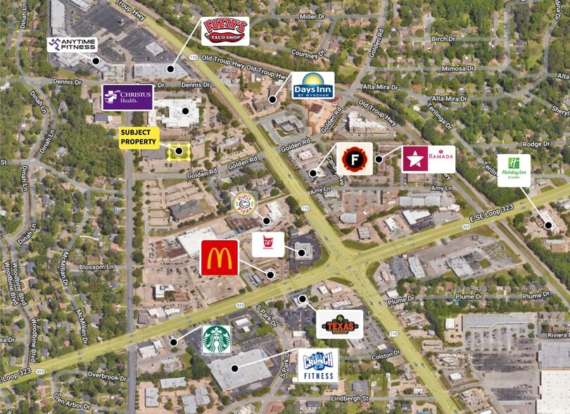The site benefits from excellent accessibility and visibility along Golden Road and Paluxy Drive, offering 77 parking spaces and immediate occupancy.