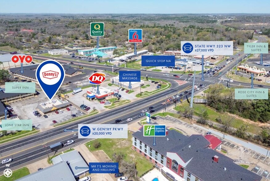 Northmarq is pleased to offer for sale to qualified investors the opportunity to purchase a fee simple interest in the Denny's located in Tyler, TX (“The Property”). The Property consists of a 2,324-square-foot freestanding retail building on a 0.45-acre parcel of land. Denny's is operating under a longterm, absolute NNN lease with 13 years of lease term remaining. Additionally, the lease features 10% rental increases every five (5) years, offering investors a hedge against inflation. The next rent bump occurs in May 2028.
