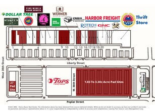 2,240 – 14,761± SF commercial space available at Liberty Center I, a 229,805± SF retail center anchored by Tops Friendly Markets & AMVETS Thrift Store.? Available options include retail, mixed-use & second generation restaurant space. Located in a high traffic area on the public bus route with excellent visibility, abundant parking, and easy ingress/egress.? Population of over 117,000 is within a 3-mile radius.? Tenant incentives available including new white box space with ADA restroom.? Join Tops Market & Gas Station, AMVETS Thrift Store, Harbor Freight Tools, Erie Gymnastics Center, GNC, Dollar Tree, Rotech Healthcare, PA Wine & Good Spirits, H&R Block, Rent-A-Center, Northwest Savings Bank, Werner Books & Coffee, Village Smithy Emporium, Fred’s Furniture, and more. Tenants pay base rent plus NNN charges & utilities.? NNN charges estimated at $4.28/SF/YR based on 2024.? 3D tours & floor plans available.? Pad sites also available for lease starting at $54,000/Acre/Year - NNN - up to 2.1± acres available.? LERTA property tax incentive program for improvements to pad sites offering 80-100% tax abatement on improvements for 10 years. Contact broker for additional information or to schedule a tour.?