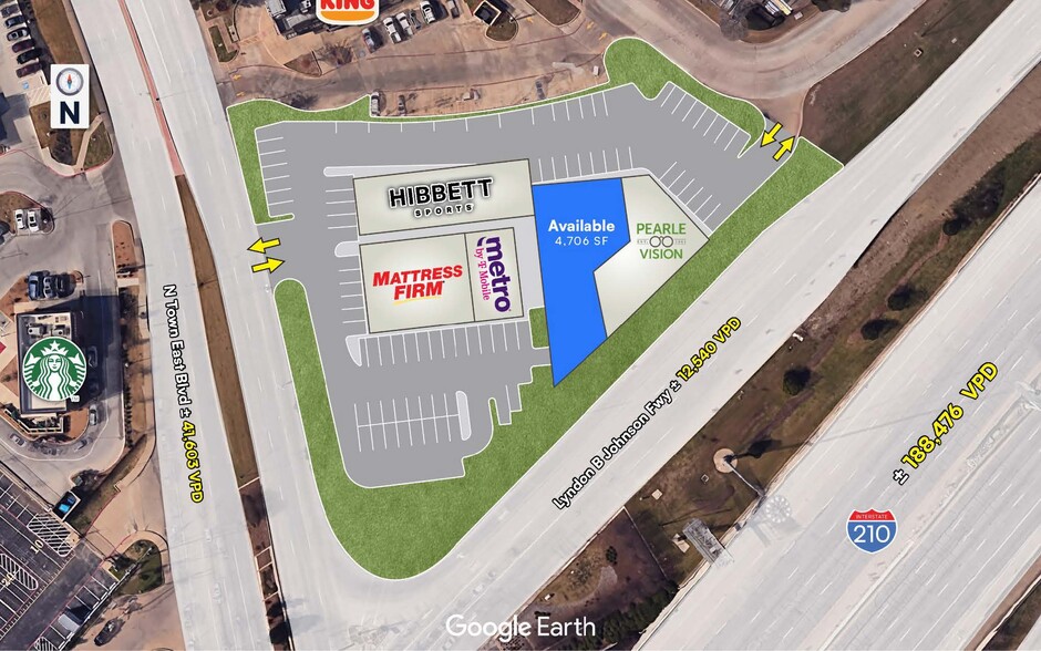 - Prime corner frontage on Highway 635 and Town East Blvd with ±188,476 VPD and ±41,603 VPD respectively.