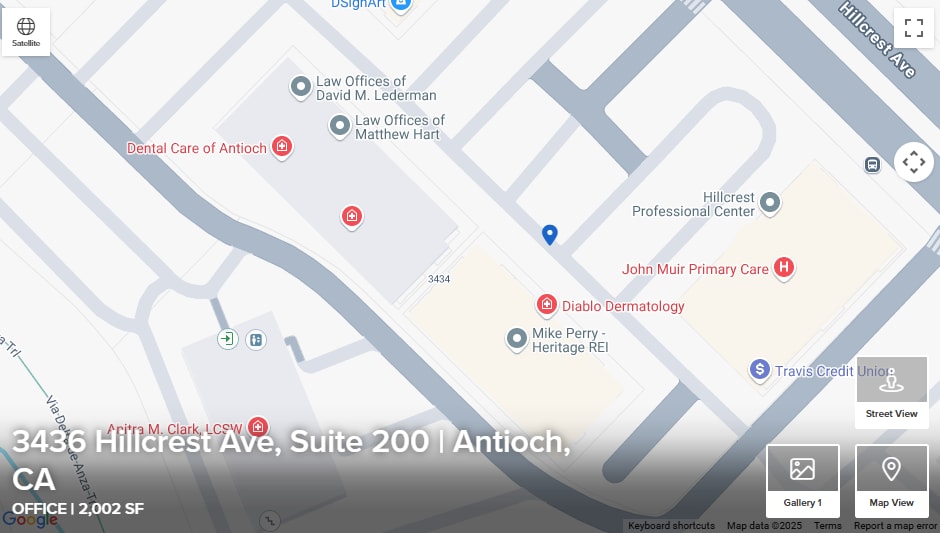 For Lease – Prime Medical Office | 3,606 Sq Ft | Antioch, CA Exceptional opportunity for medical professionals to occupy a spacious, well-configured office in the heart of Antioch. Positioned in a high-visibility medical/office complex with excellent access to major arterials, this 3,606 sq ft suite. The space is ideal for • Aesthetic Medicine, Plastic Surgery, ENT, Dermatology • Primary care or specialty medical practices • Dental or orthodontic offices • Physical therapy or chiropractic clinics • Urgent care or outpatient services • Diagnostic or imaging services • Surgery Center Property Highlights • 3,606 Square Feet of improved medical/office space • Professional medical build-out conducive to clinics & healthcare services • Six (6) oversized exam/procedure rooms plus two (2) private offices one with ensuite restroom • Reception/waiting area designed for patient flow and comfort by Karl Schultz (Cal Berkeley Architect) • Staff support spaces including employee lounge, storage, and staff lockers • Three (3) restrooms • Lab • Front and Rear Access, ADA compliant • Plenty of natural light and modern finishes • Ample parking for patients and staff • Well-maintained professional complex with medical tenants (including John Muir, and Delta Association of Realtors) • Easy access to Highway 4, public transit, and surrounding business amenities Location Benefits • Strategically located in Antioch’s bustling medical corridor • Close proximity to major hospitals and specialty care providers. Within 2 miles of Delta Sutter Medical Center • Within 1 mile of Antioch BART • Surrounded by retail services, pharmacies, restaurants, and residential neighborhoods • Within walking distance to the Crossings Shopping Center • Strong community demand for healthcare services Asking $2.95 psf (Includes CAM. No additional cost for CAM). Tenant pays for PG&E.