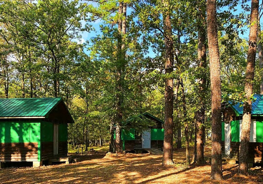 Improvements include a 1,523± SF lodge built in 1967 with central heat and air, as well as a 1,243± SF kitchen/bath house constructed in 2008, also equipped with central heat and air. Additionally, the property features four 16’ x 16’ bunk cabins.