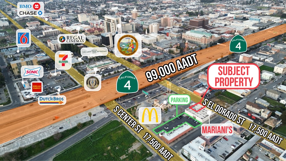 - High-traffic location just off Highway 4 (Crosstown Freeway) with excellent visibility.