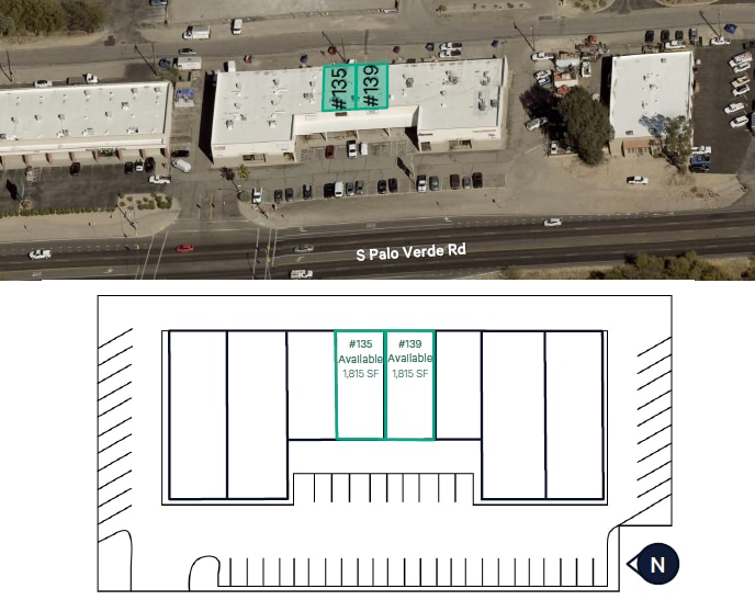 This property is located on Palo Verde between Ajo Way and 44th Street. The property has a glass storefront, parking in front and on the sides and rear loading area with roll-up doors.