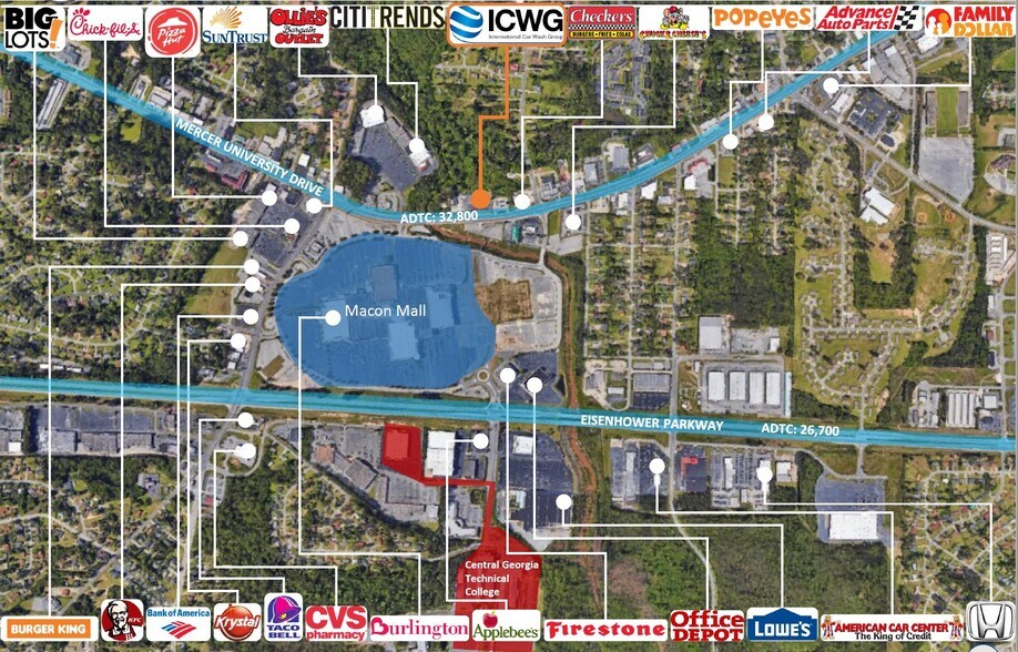 - Located directly across from the Macon Mall, a 1,000,000+ square foot shopping destination: Burlington, Pet Land, Finish Line, Snipes, and more.