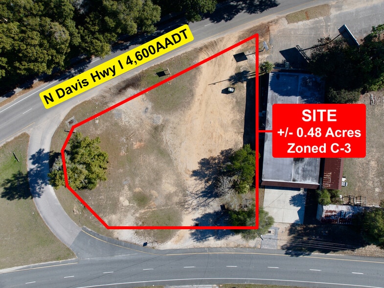 This offering presents a rare opportunity to acquire a cleared, level 0.48-acre commercial parcel with immediate income and long-term upside. Zoned C-3, the property supports a wide range of intensive commercial and retail uses. It is currently leased to a trucking/logistics tenant under a 5-year NNN lease, generating $2,300 per month ($27,600 annually) and delivering an attractive 8% cap rate. Investors benefit from stable, turnkey cash flow while maintaining flexibility for future redevelopment. The parcel is shovel-ready, utilities are available, and a site plan is in place to support future build-out or value-add strategies. With prime N Davis Hwy frontage, strong traffic counts and immediate access to the interstate and efficient regional transportation routes, the property is ideal for retail, service, or logistics-oriented users. This asset is well-positioned for investors seeking income today with redevelopment optionality tomorrow.
