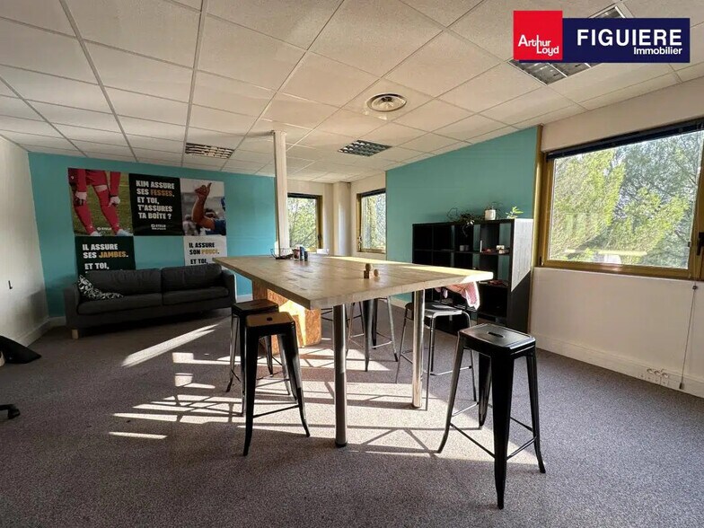 ARTHUR LOYD FIGUIERE IMMOBILIER vous propose une surface de bureaux d'environ 185 m2 au 1er étage d'un immeuble tertiaire. Les locaux se situent au sein d'un Parc tertiaire arboré, calme et facile d'accès. Les locaux sont aménagés en plusieurs espaces et sont équipés de la climatisation réversible en faux plafond. Parc sécurisé avec gardien Environnement boisé de standing, très agréable Facilité d'accès Doubles sanitaires communs sur le palier Digicode à l'entrée des immeubles Fibre Optique sur tout le parc Restaurants sur site Moquette au sol Climatisation réversible en faux plafond Grand open space Espace cuisine 1 bureau fermé 1 salle de réunion Parkings collectifs sur le parc