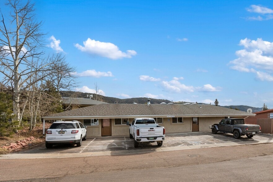 Exceptional single-level commercial building ideally suited for professional office space, mixed business use or medical space. Located just three blocks off Highway 24, this property offers visibility and convenient access in a great Woodland Park location—right next door to the post office. The layout features approximately 9 private offices, a spacious conference room or classroom and a centralized reception area. Full kitchen by the back door with stainless steel appliances. The executive office suite includes an attached private bath with shower and a walk-in closet. Three total restrooms serve the building, including one ADA-compliant facility. Recessed and directional lighting, abundant natural light from multiple skylights, and quality finishes throughout. Please note that 1,134 square feet in the unfinished basement is included in the total square footage. Parking is available on the front, back and side of the building for staff and clients. This is a rare opportunity to secure a well-appointed commercial space in Woodland Park.