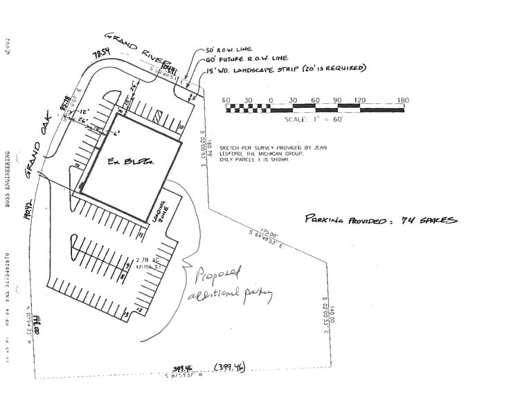 Located at a traffic signal on the southeast corner of Grand River Avenue and Grand Oaks Drive. Access off both Grand River Avenue and Grand Oaks Drive.