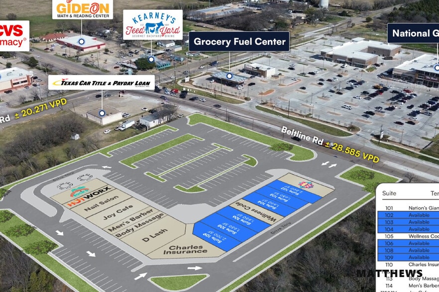 - Excellent access and visibility off Belt Line Rd. which is the main north-south thoroughfare between I-30 and Hwy. 80