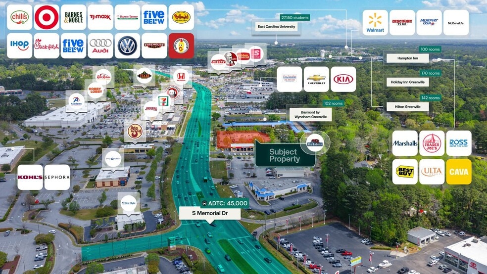 Surmount is pleased to present the exclusive listing for a Red Lobster located at 3501 South Memorial Drive, Greenville, NC 27834. The site consists of roughly 8,355 rentable square feet of building space on an estimated 1.87-acre parcel of land. Red Lobster is subject to a 22.61-year Triple Net (NNN) lease, which commenced 7/28/2014 and has more than 10.75 years remaining on the lease. The current annual rent is $200,000 and has scheduled increases of 2.00% annually starting 8/1/2027.