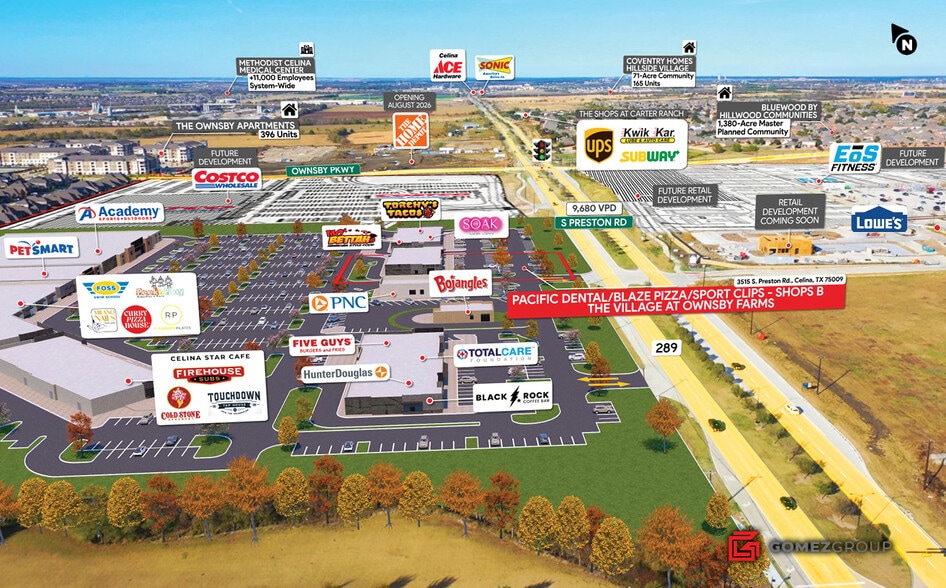 Pacific Dental/Blaze Pizza/Sport Clips – Shops B at The Village at Ownsby Farms is a brand new, 2025 construction, multi-tenant investment opportunity strategically positioned in the heart of The Village at Ownsby Farms, one of Celina’s newest and largest retail destinations. Situated within the +100 acre master-planned retail development, Shops B is shadow anchored by Costco and Academy Sports, with Lowe’s, EoS and Home Depot directly across the street. The asset is 100% occupied with all 4 tenants on brand new NNN Leases. Situated on a 1.36 Acre Lot with ample parking and drive-thru.