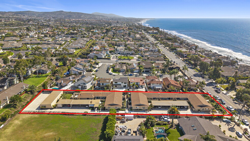 Incredible Investment Opportunity! The Palisades Apartments are comprised of 15 units in cottage-style clusters and sits on an acre of prime real estate perched along the coastal blufftops between the luxurious revitalized Dana Point Harbor and the San Clemente Pier. These well-maintained single-story units offer stable income and feature a mix of one and two bedroom units with private patios. Tenants enjoy substantial parking with a blend of carports with storage cabinets, garages and perimeter parking. Some units include interior W&D systems and there is also a community on-site laundry room. The owner made a significant investment by just completing construction of a new electric service line with new individual meters and sub-panels. This beautiful coastal community is centrally located to multiple transit systems including the 5 FWY, Pacific Coast Hwy, Amtrak & Metrolink Trains, the Dana Point & San Clemente trolly systems and local parks and award-winning schools.