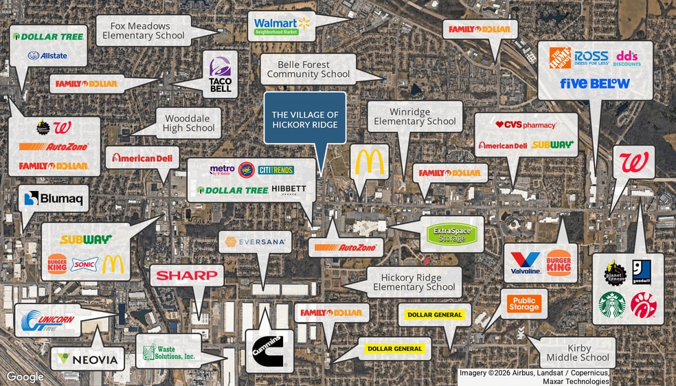 The Village of Hickory Ridge is a 17,194 SF, multi-tenant retail strip center located at 3538–3582 Hickory Hill Road in Memphis, TN. Built in 1984 and situated on approximately 1.4 acres. The property consists of 17 retail units designed to serve the surrounding neighborhood.