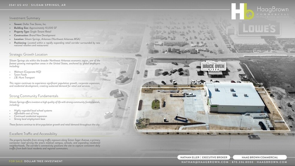 Brand New Dollar Tree Investment 3541 US-412 10,000 SF Retail Building Siloam Springs, AR 72761 $3,514,282 CAD ($351.43 CAD/SF) 6.50% Cap Rate