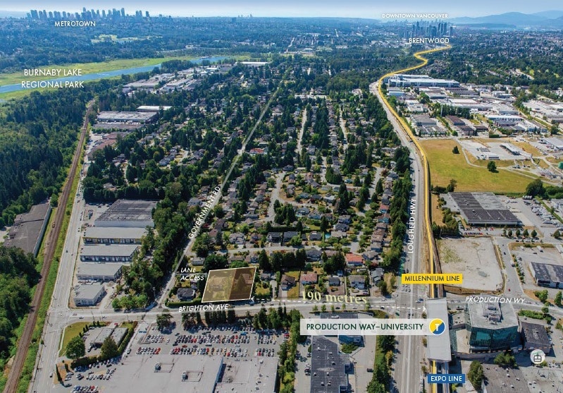 CBRE is pleased to present a 0.81-acre (35,082 sq ft) land assembly located at 3575 & 3585 Brighton Avenue in Burnaby, BC. The site is comprised of two owner-occupied single-family homes, strategically situated in the desirable Government Road neighborhood near SFU. With a potential for high-density residential development up to 20 storeys (approx. 5.0x FSR) and no ground floor retail required, this site offers maximum flexibility. The Site is a mere 4-minute walk to the Production-Way University Skytrain Station SkyTrain station (Expo and Millennium lines), and provides unparalleled access to SFU and a wide array of amenities. The recently approved Burnaby OCP designates this as the highest density site available in the immediate area, making it exceptionally well-suited for rental or student housing development. Both owners are supportive of granting conditional time to achieve rezoning approval from the City of Burnaby. Construction of the Burnaby Mountain Gondola, connecting the SkyTrain station to SFU, is anticipated to begin in 2026, further enhancing the property's value and accessibility. Surrounded by key amenities including Costco, Brentwood, Metrotown, and Burnaby Lake Regional Park, this site represents one of the highest-density opportunities in the immediate area and is poised for transformative residential development.