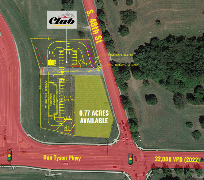 - Great visibility to a combined 118,000 vehicles per day on I-49 and Don Tyson Parkway