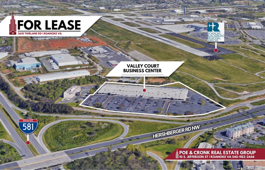 Presented for Lease by Poe & Cronk Real Estate Group – the Valley Court Business Center is a 160,000± SF multi-tenant facility positioned on 13.7 acres in Roanoke’s established industrial and business corridor. The property offers clear heights ranging from 14’ to 24’, providing flexibility for both office and light industrial users. Availability totals 114,000± SF, including 74,000± SF of premium, second-generation office space and 40,000± SF of adjacent shell space ready for build-out to suit a wide range of user requirements — from office configurations to warehouse or flex applications. Two heated and cooled demised suites range in size from 7,500sf - 8,500sf. The building’s expansive layout and adaptable ceiling heights make it ideal for corporate headquarters, technology, back-office operations, or light manufacturing. Planned upgrades include the installation of dock-high and drive-in doors, further enhancing logistics capability and user convenience. Ample on-site parking, convenient access to I-81, I-581, and proximity to Roanoke–Blacksburg Regional Airport further strengthen the property’s regional connectivity.