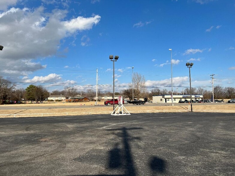 Has been Dispensary for the last year...unforeseen circumstances forced the last tenant out of the Business. Was Car Mart for 8 years before . Excellent condition inside with 5 offices, 1 bathroom, drive thru heated garage, security camera system, alarm system and a few desks. Recently tastefully remolded for a Dispensary. Almost an acre of paved asphalt and pipe fencing. Large commercial lighted street sign and god security pole lighting. Owner will lease to Medical Marijuana Business / Dispensary or as a Awesome Car Dealership. Asking $3000 per month NNN. Call john @ 918.693.3030 for more info and current pics..