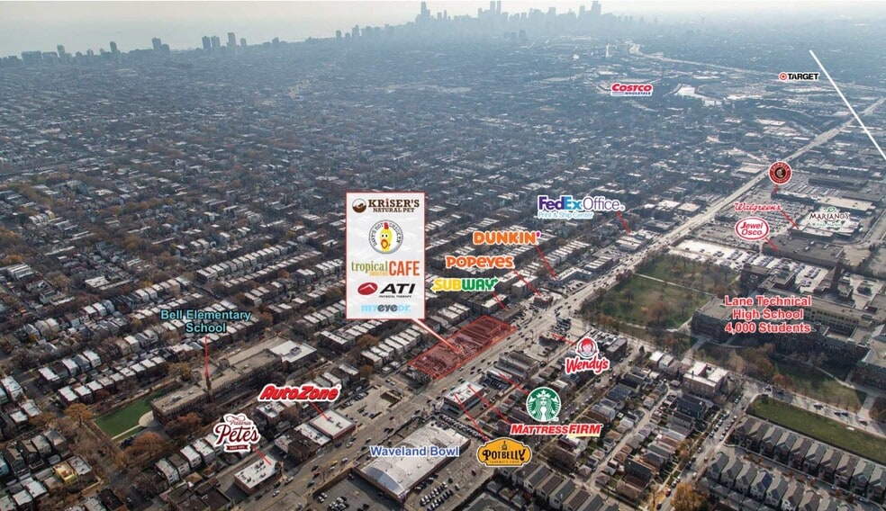 Multi-tenant retail development located on heavily traveled Western Avenue (30,600 VPD) north of Addison Street (21,000 VPD)