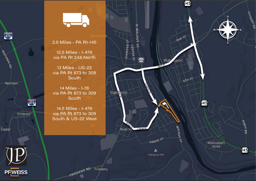 • 14 miles – I-78 via PA Route 873 to Route 309 South
