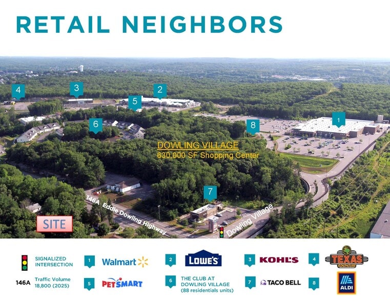 Vacant lot with highway access located at the light across from new regional retail center off Route 146 corridor. Shadow anchored by Dowling Village Shopping Center and #1 Walmart in RI.