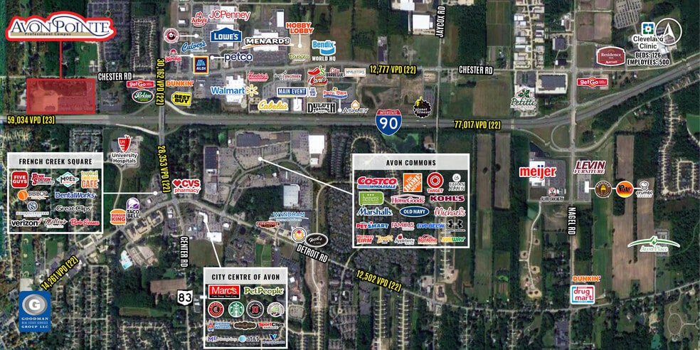 Avon Pointe is home to a variety of medical and professional services Located on Chester Road west of the Interstate 90 and State Route 83 interchange in the northwest quadrant of a fast-growing, regional trade area Prominent visibility to Interstate 90 AVAILABLE: 5.5 AC FOR SALE (divisible)