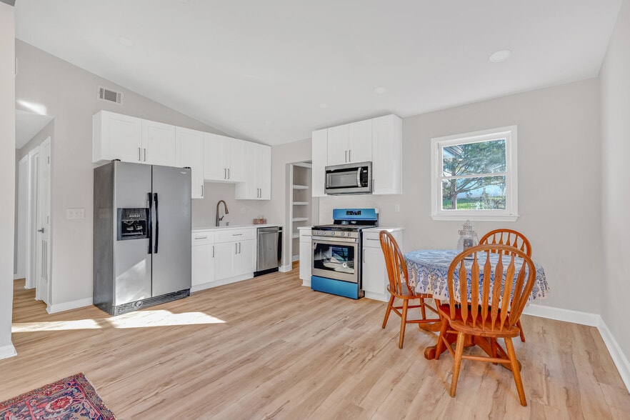 A Great investment opportunity. A Complete Update! Great open floor concept with a grand living room and exposed beams, 3 bedrooms with vaulted grand master suite, 2 full baths, brand new kitchen with top quality cabinets, quartz countertop, Whirlpool appliances, open pantry, W&D, detached additional room/workshop, and beautiful fenced backyard. Wonderful location not only close to I-75, 41, and 120 loop, but also across from Kennesaw State University. Thomas & Brown closing attorney. No HOA. This is an AMAZING home for this price range. This would be a great investment for both commercial use and residential use or work & live.