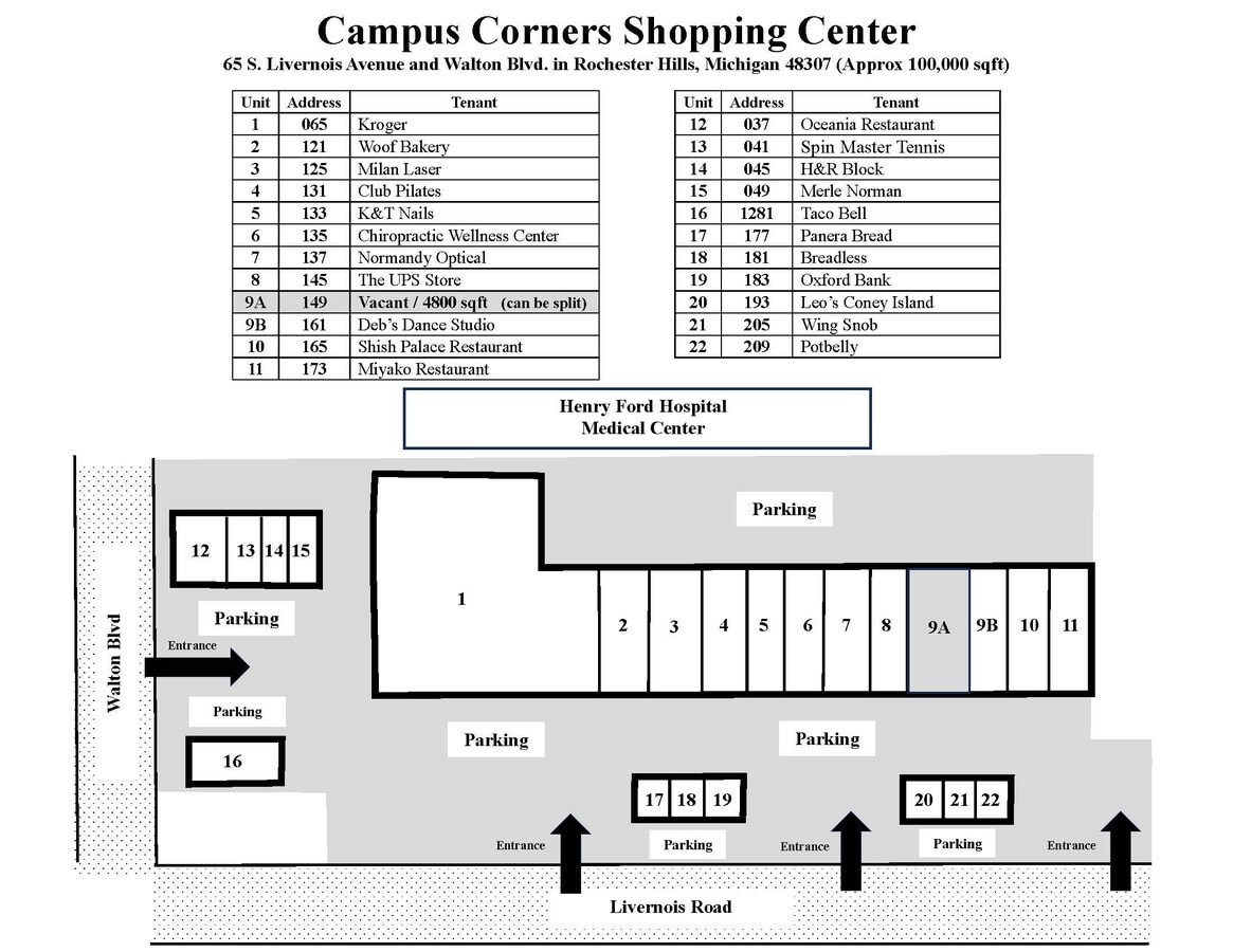 - Strategically Located Across from Rochester High School and Henry Ford Hospital