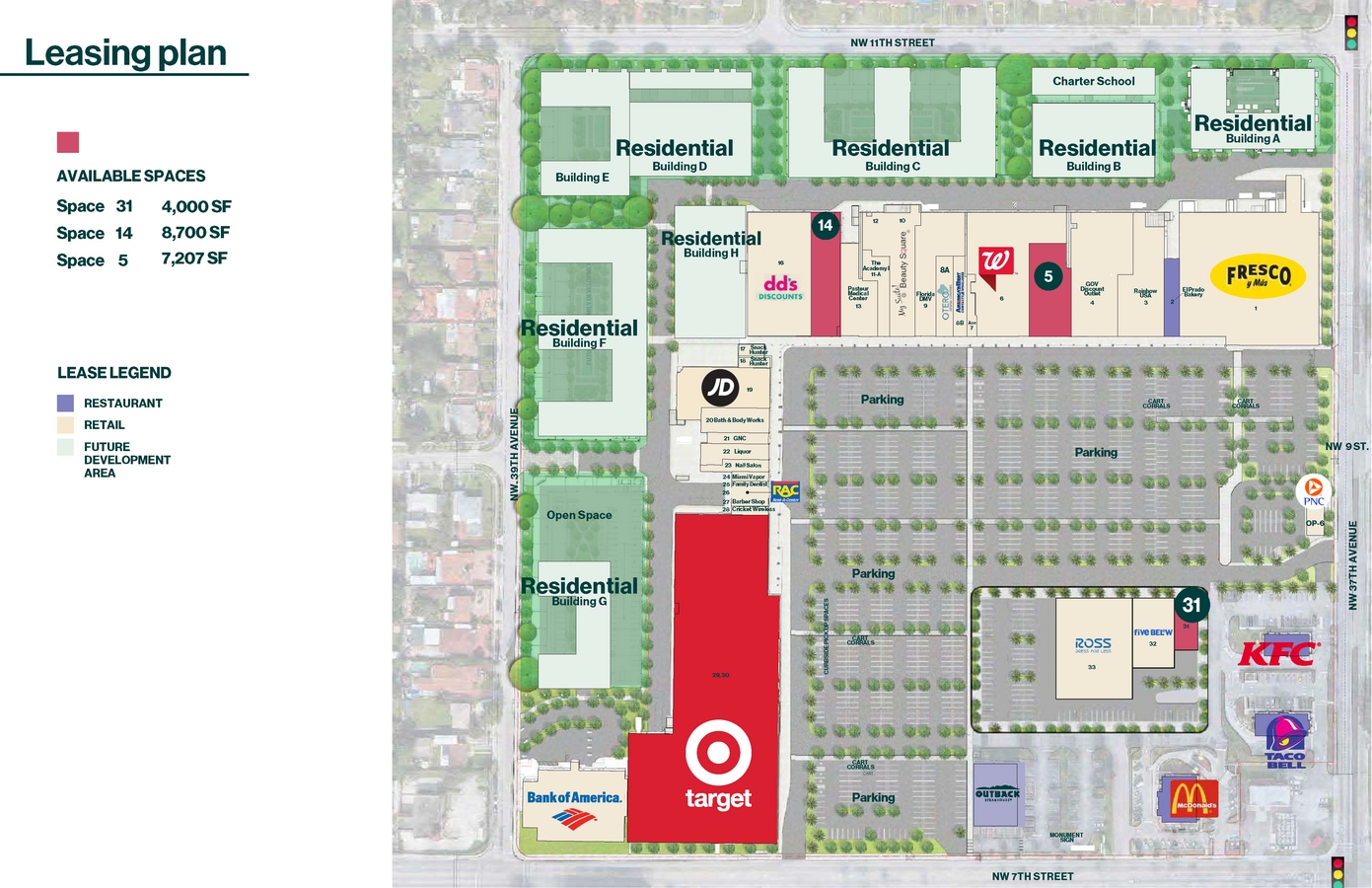 Centro City will transform an existing shopping center into a community-centered mixed-use destination with the construction of 1,188 apartment units and public open spaces, tied to flagship retail stores including Fresco y Más, Ross, Walgreens and Target. This development will be located on a 39-acre site located at the northwest corner of NW 7th Street and NW 37th Avenue in Miami, FL, across the street from the historic Magic City Casino, a Miami gaming and entertainment institution. There is a significant lack of supply and a high demand for new construction multifamily in this urban infill submarket, and Centro City will serve to fill that void.