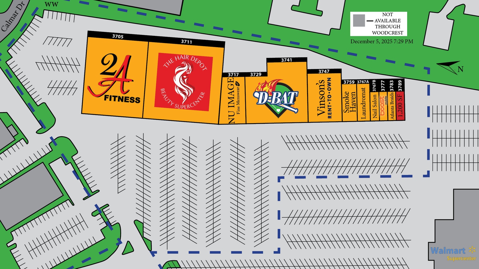 - Triple anchored by 2A Fitness, a D-Bat, and The Hair Depot Beauty Supercenter, plus Walmart acts as a shadow anchor.