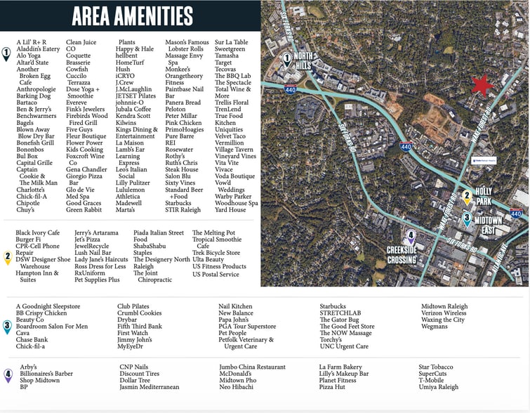 First floor office space for lease Suite 101: 2,279 SF Suite is in a primarily medical office building but can be used as medical office or general administrative office Located just off Wake Forest Road, near I-440 Less than 0.5 mile from Duke Raleigh Hospital One mile from Midtown East and two miles from North Hills Free surface parking available 4:1,000 parking ratio