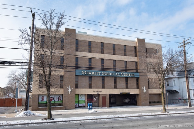 3715 Main Street in Bridgeport, Connecticut, is a professional office and medical building known as Merritt Medical Center. Situated in the city's North End neighborhood, this four-story Class B property spans approximately 31,288 square feet. Originally constructed in 1965 and renovated in 1990, the building offers a range of suites tailored for medical and professional use. Tenants benefit from features such as elevator access, central air conditioning, and generous parking accommodations, including 85 surface spaces and 18 covered spots. Many suites are designed with exam-ready layouts, complete with sinks, closets, and reception areas, making them ideal for healthcare providers and other professionals such as attorneys. Lease terms are flexible, and several units include utilities like heat, hot water, and taxes in the rental rate. The location is highly walkable and conveniently close to shopping, public transportation, and major highways including the Merritt Parkway and I-95.