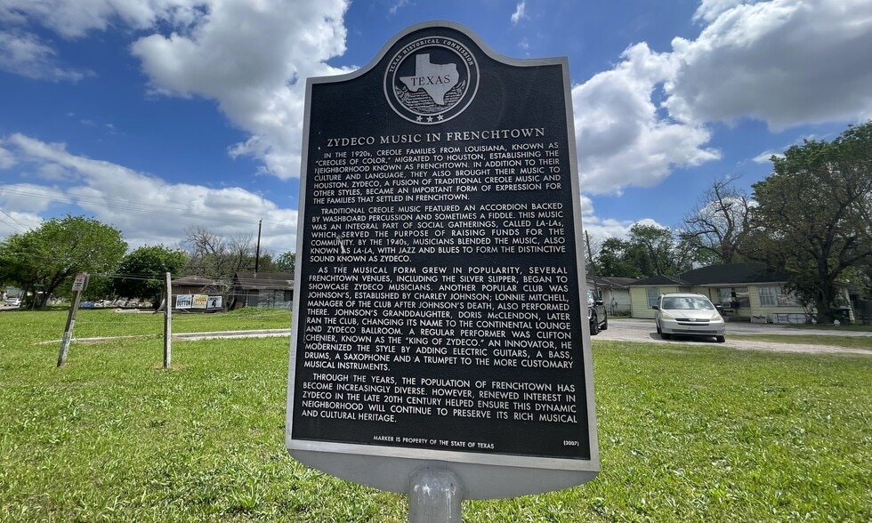 "Title: Zydeco Music in Frenchtown - In the 1920s, Creole families from Louisiana, known as “Creoles of Color,” migrated to Houston, establishing the neighborhood known as Frenchtown. In addition to their culture and language, they also brought their music to Houston. Zydeco, a fusion of traditional Creole music and other styles, became an important form of expression for the families that settled in Frenchtown.