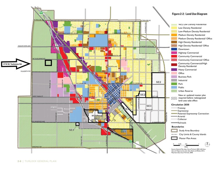 Urban Reserve.. 39.39 acres in the City of Turlock!! The City's General Plan illustrates future growth within their General Plan and EIR. This property is near the Main access points of Highway 99 from Monte Vista and Fulkerth. This Property and Your Visions will be located near Amazon, Costco, Dust Bowl, Pedretti Sports Complex, and Other Large Retailers. This property is near the existing City's Community Commercial Zoning. The Subject is on the outside edge of Town! Currently being Farmed in Almonds. House, Garage, and Outbuildings. Ag well of 30hp , 850gpm. Perfect Location for an Ag Business, Planned Development, and/or Investment.