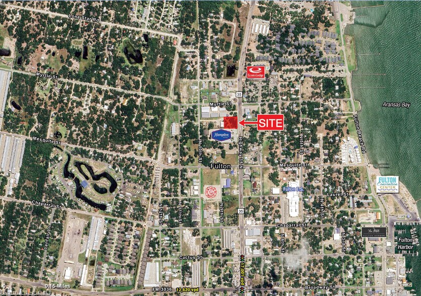 Strategically located just minutes from Downtown Rockport, Main Street, and Rockport Harbor, this 0.75-acre commercial parcel offers outstanding accessibility and visibility in one of the Gulf Coast’s most active corridors. Water and sewer are stubbed at the rear of the front pad site, providing easy access for development. Electrical service has been confirmed and is available at the front of the property. The site has direct access to TX-35 and benefits from strong daily traffic counts, with 17,414 vehicles per day (VPD) on TX-35 and 13,700 VPD on Myrtle Street—ensuring excellent exposure for any future development. The property is located approximately 2 miles from both Walmart (1.7 million annual visits) and HEB (1.6 million annual visits), and sits directly next to the Hampton Inn & Suites and Econo Lodge, with five additional lodging options within a one-mile radius—ideal for capturing both local and tourist-driven demand.