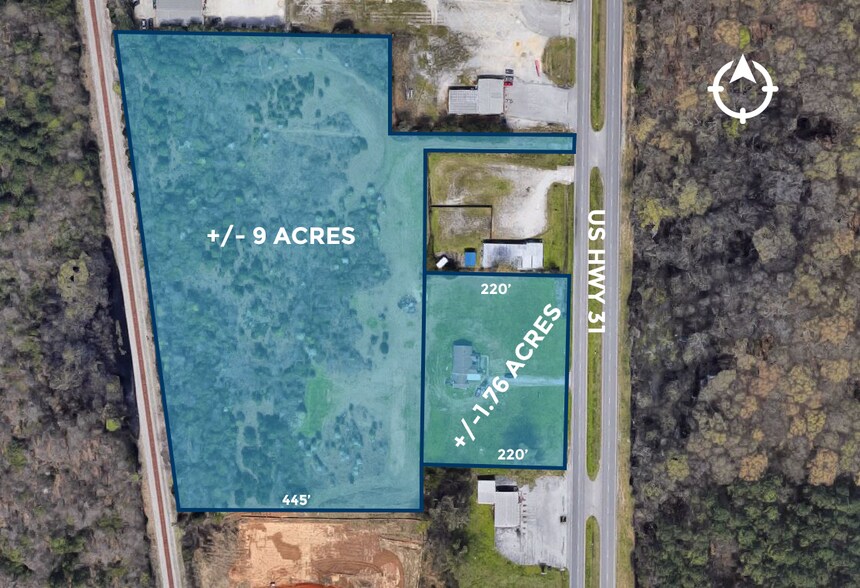 10.51 Ac +/- available with frontage on Highway 31 S. Close proximity to many industrial and retail businesses.