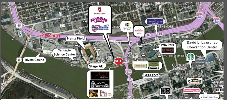 Nestled between Heinz Field and PNC Park, 375 North Shore Drive offers many opportunities to work and play. In addition to great restaurants like Jerome Bettis Grill, Rivertowne, and The Foundry, the newly developed North Shore Place also features Saga, Bar Louie and Burgatory. Just steps from the Hyatt Place, Spring Hill Suites and Marriott Residence Inn.