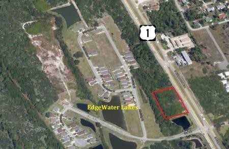 1.8 acre prime commercial parcel on US 1 by the entrance of a single family subdivision and across from a large waterfront rather up-scale retirement community. Basically, it is a prime corner lot except the water feature right at the subdivision entrance. The face to face communities entrances, Edgewater Lakes Blvd and Rio Grande, maybe be signalized on US 1 in the future as the traffic steadily increases. Large frontage with great visibility. Level and cleared. This prime property is ideal for a strip center for more than 10 store fronts, 2 restaurants, 2 banks, 1 large medical building for multiple office units or 2 retail, medical/professional mixed use buildings. Willing to sell a portion as the user needs. The upside potential is great! The street address points to a location that is off. Please use this coordinates 28.930000, -80.876668