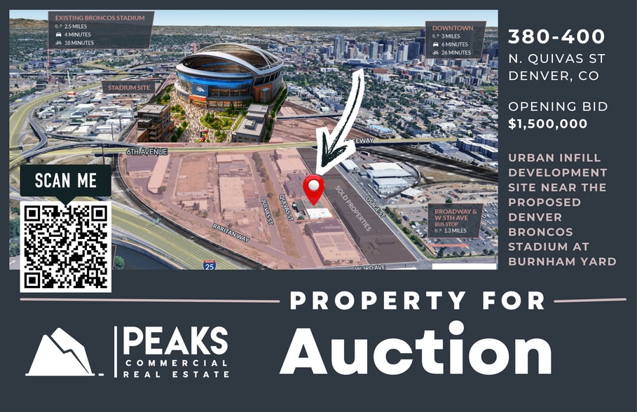 UPCOMING AUCTION: 380-400 Quivas Street offers a rare investment opportunity near the proposed Denver Broncos Stadium at Burnham Yard.