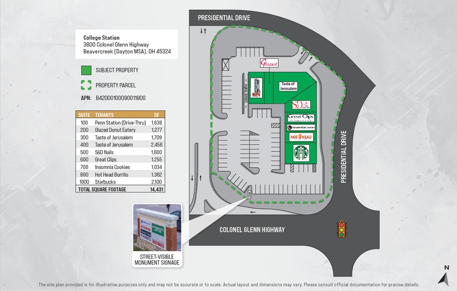 - Notable Existing National and Regional Tenants Include: Starbucks, Penn Station (Drive-Thru), Great Clips, Hot Head Burrito’s, and Insomnia Cookies
