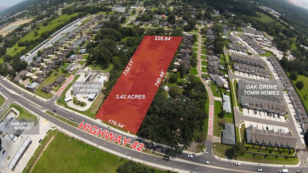 38141 LA-42 - 3.42 Acres on Hwy. 42, Prairieville, LA 3.42 Acres of Commercial Land Offered at $1,384,226 CAD in Prairieville, LA 70769