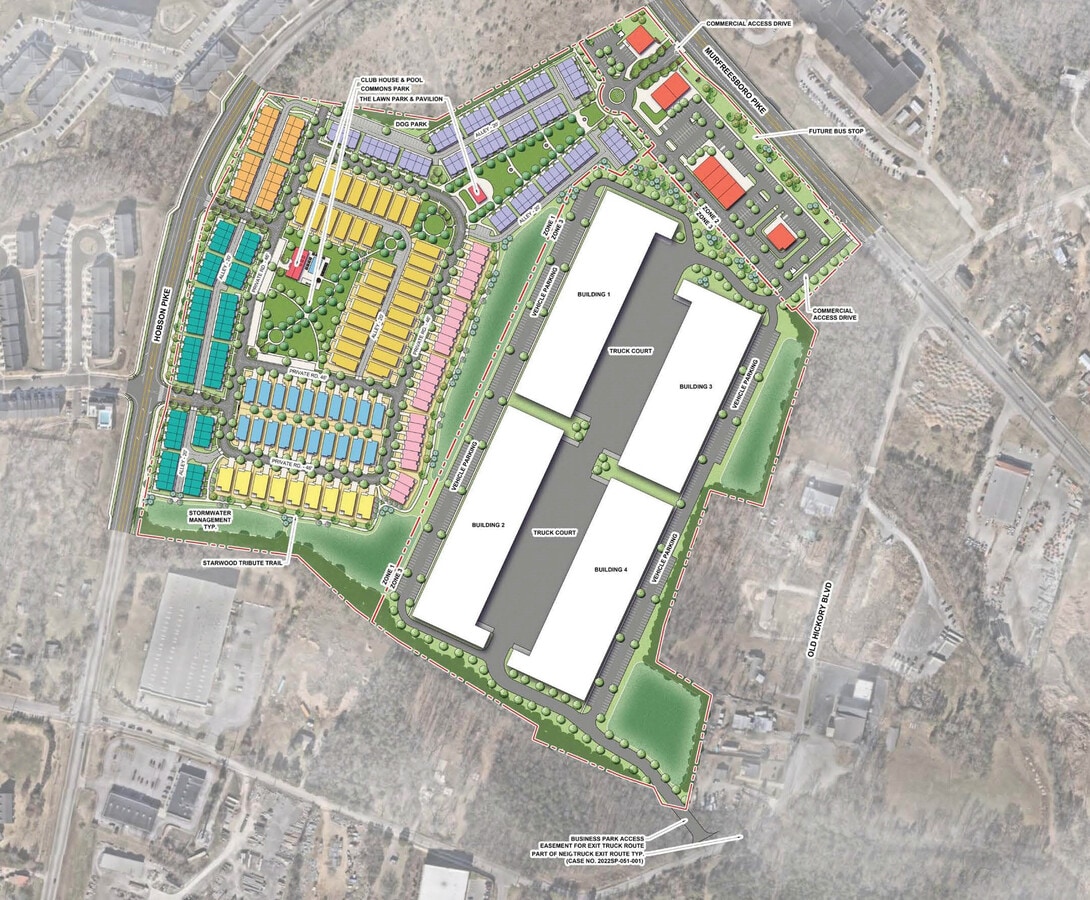 CBRE is pleased to present The Commons at Starwood, approximately 25,000 SF of prime retail and F&B space offered for lease, sale, or ground lease. The site was once home to Starwood Amphitheater which hosted entertainment acts from around the world. Today the site is being transformed into an exciting mixed use community consisting of 235 homes and condos, +/-485,000 SF of logistics space, and +/-6 acres of retail frontage along Murfreesboro Pike, one of Nashville's busiest commercial corridors, which boasts over 34,000 vehicles per day.