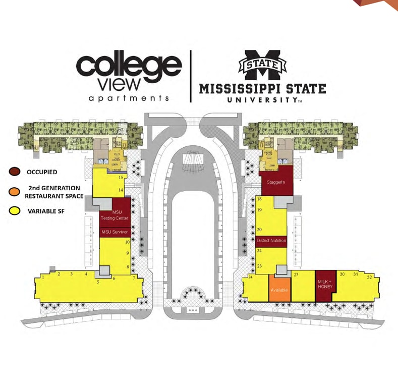 • Ground floor retail in Phase I of Starkville's premier mixed use development.