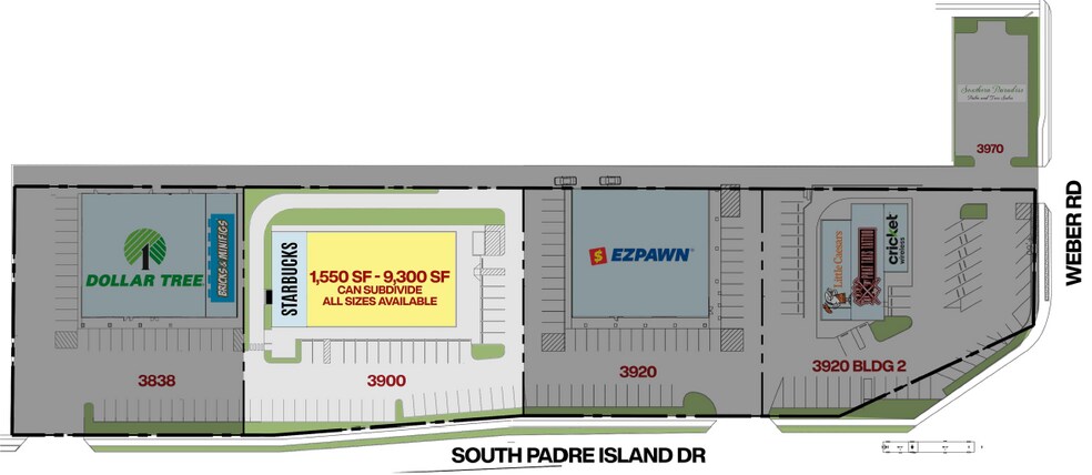 South Park Plaza 3900 Padre Island Dr 1,550 - 9,300 SF of Retail Space Available in Corpus Christi, TX 78415