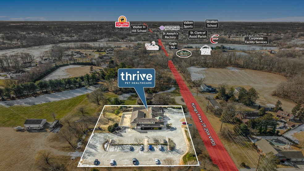Sands Investment Group is pleased to exclusively offer for sale this 11,665 SF single-tenant Thrive Pet Healthcare Double Net (NN) asset located at 392 Kings Highway in Swedesboro, NJ. Thrive Pet Healthcare is a leading national veterinary services platform, operating more than 400 clinics across 37 states. This offering features a highly passive, landlord-friendly lease structure, with responsibilities limited to the roof and structural components, providing investors with minimal management obligations and durable, predictable cash flow. Strategically located in the Philadelphia MSA (the 7th largest in the United States), the hospital has provided primary care, urgent care, and dentistry to dogs and cats in the region since 1986. Together, these attributes create a unique and compelling investment opportunity.